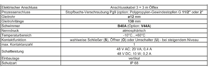 Hänge-Schwimmer-Magnetschalter Edelstahl 1.4571, Schwimmer Buna Typ HV.-L130-B40A-3Öl